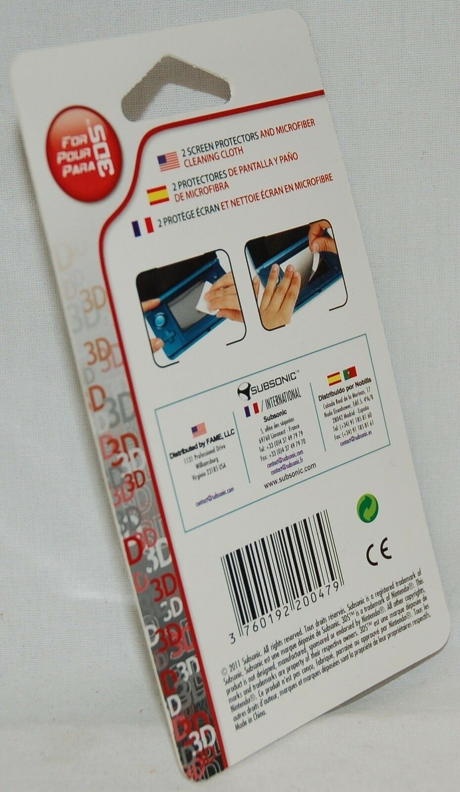 2 x NEW Subsonic Nintendo 3DS Screen Protectors + Cloth Pair RETAIL Packaging US