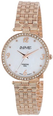 NEW August Steiner AS8078RG Womens Diamond Accented MOP Rose Gold Bracelet Watch