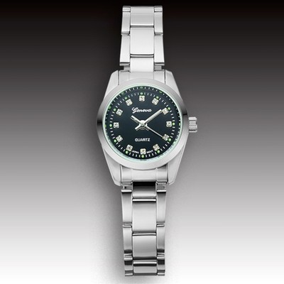 NEW Geneva 7425 Women's Platinum Bliss Collection Black/Crystal Dial Small Watch