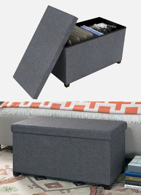 NEW Atlantic Ottoman Hidden Storage 17x34" GRAY coffee table bench seat chest