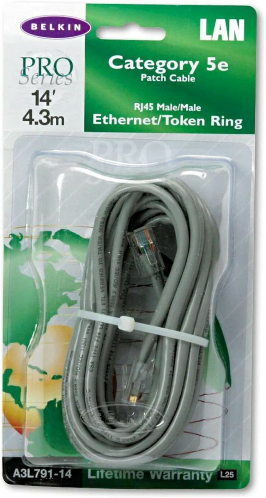 NEW Belkin A3L791-14 Pro Series Cat5e Patch Cable 14' 4.3m RJ45 Token Ring