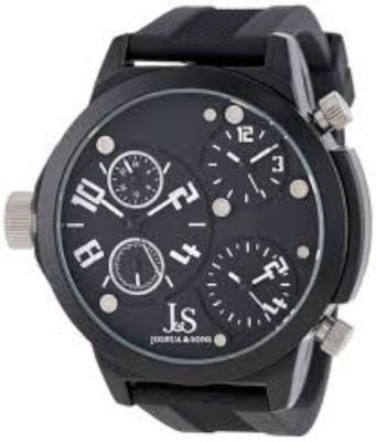 NEW Joshua & Sons JS-40-WT Mens Quartz Triple Time Zone Black Rubber Strap Watch