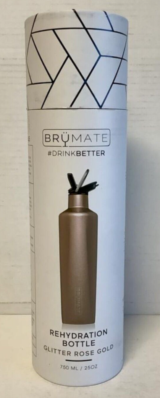 NEW Brumate 25 oz Rehydration SS Insulated Bottle Glitter Rose Gold RH25GRG