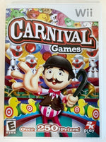Carnival Games feature 25 popular games from classic carnivals, including Clown Splash, Milk Can Toss, Nerves of Steel, Lucky Cups, Hoops, Day at the Races and Dunk Tank. Players can win over 250 upgradeable prizes ranging from a goldfish to giant stuffed animals. Character-customizing items like a pirate's wardrobe and a Viking helmet are also there to be won. The game features a fortune teller who reveals a player's fate for a price.