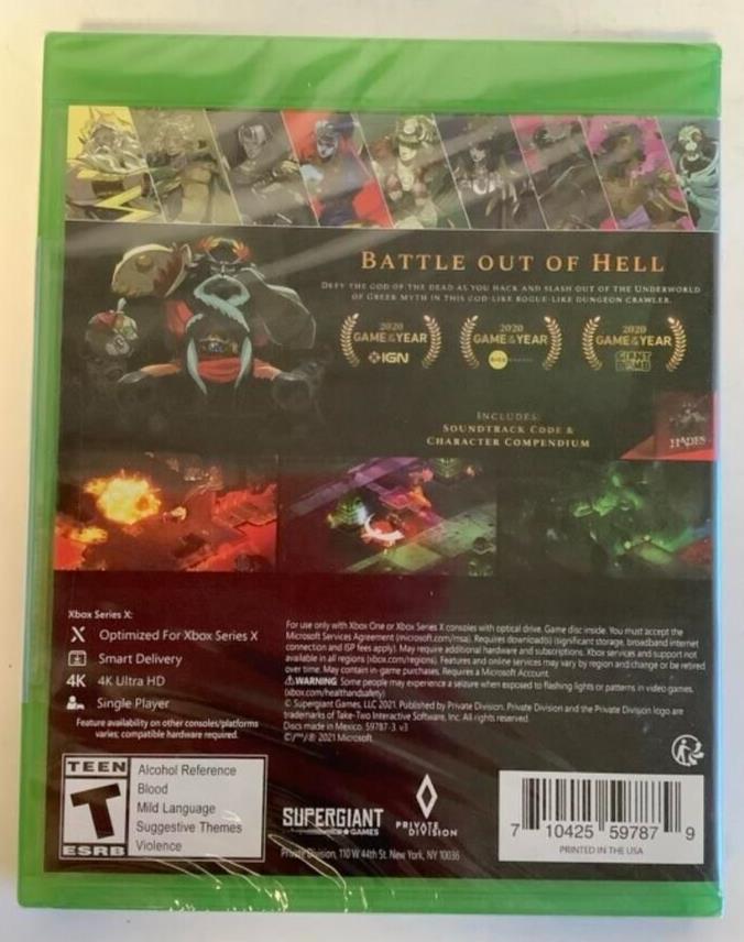 The multi-award-winning game Hades has earned “#1 Best PlayStation 5 Game of 2021” and “#1 Best Xbox Series X Game of 2021” on Metacritic. Battle out of hell in Hades, recipient of more than 50 Game of the Year awards! In this rogue-like dungeon crawler from the creators of Bastion and Transistor, you'll wield the powers and mythic weapons of Olympus to break free from the clutches of the god of the dead himself, while growing stronger and unraveling more of the story with each unique escape attempt. The physical edition of Hades includes a character compendium booklet and a download code for Hades Original Soundtrack.