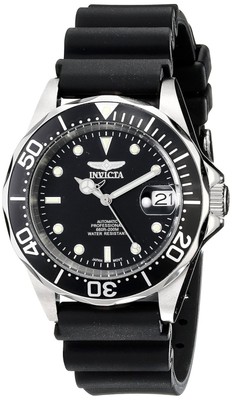 NEW Invicta 9110SYB Mens Pro Diver Automatic Black Dial Black Rubber Strap Watch