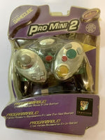 The Pro Mini 2 Controller for GameCube is the miniature controller with full-sized features! Includes: Analog controller sticks, a vibration control switch, a mode LED indicator, & our two built-in motors to provide shock function.