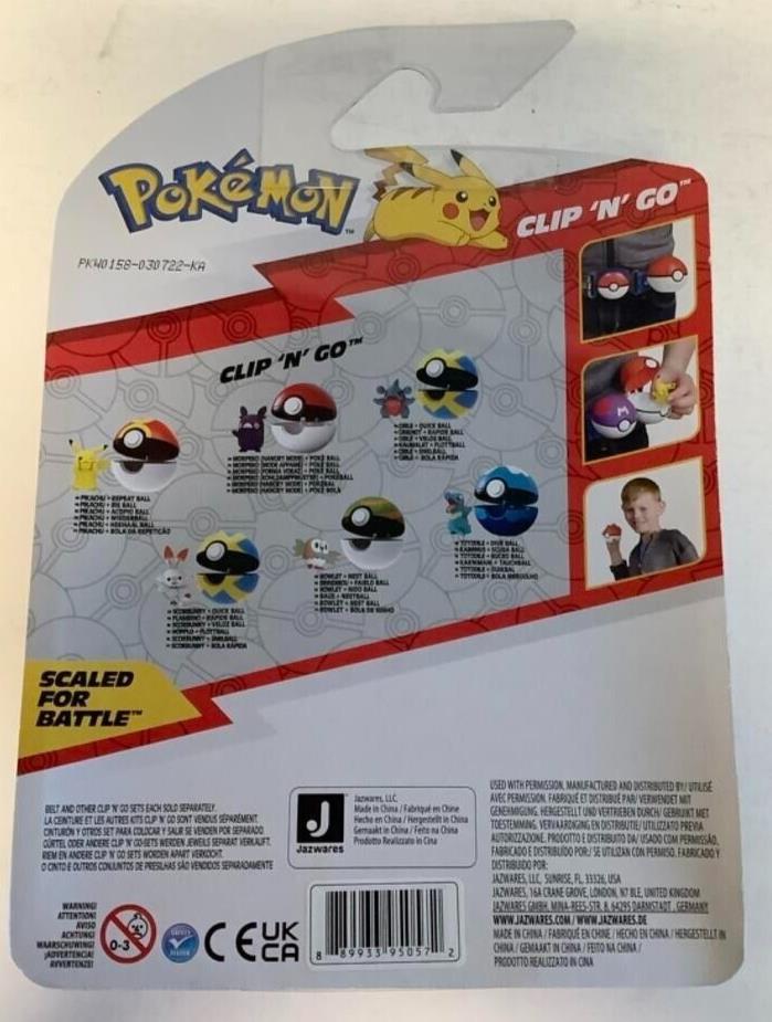 Now you can bring Pokémon battle play to life anywhere you go! Clip 'N' Go Pokemon Balls allow you to carry and hold your Pokémon like a real Pokémon trainer! Each set includes one Poké Ball and one 5cm Morpeko figure. Simply open the latch to reveal the figure inside. Add them all to your Pokémon team!