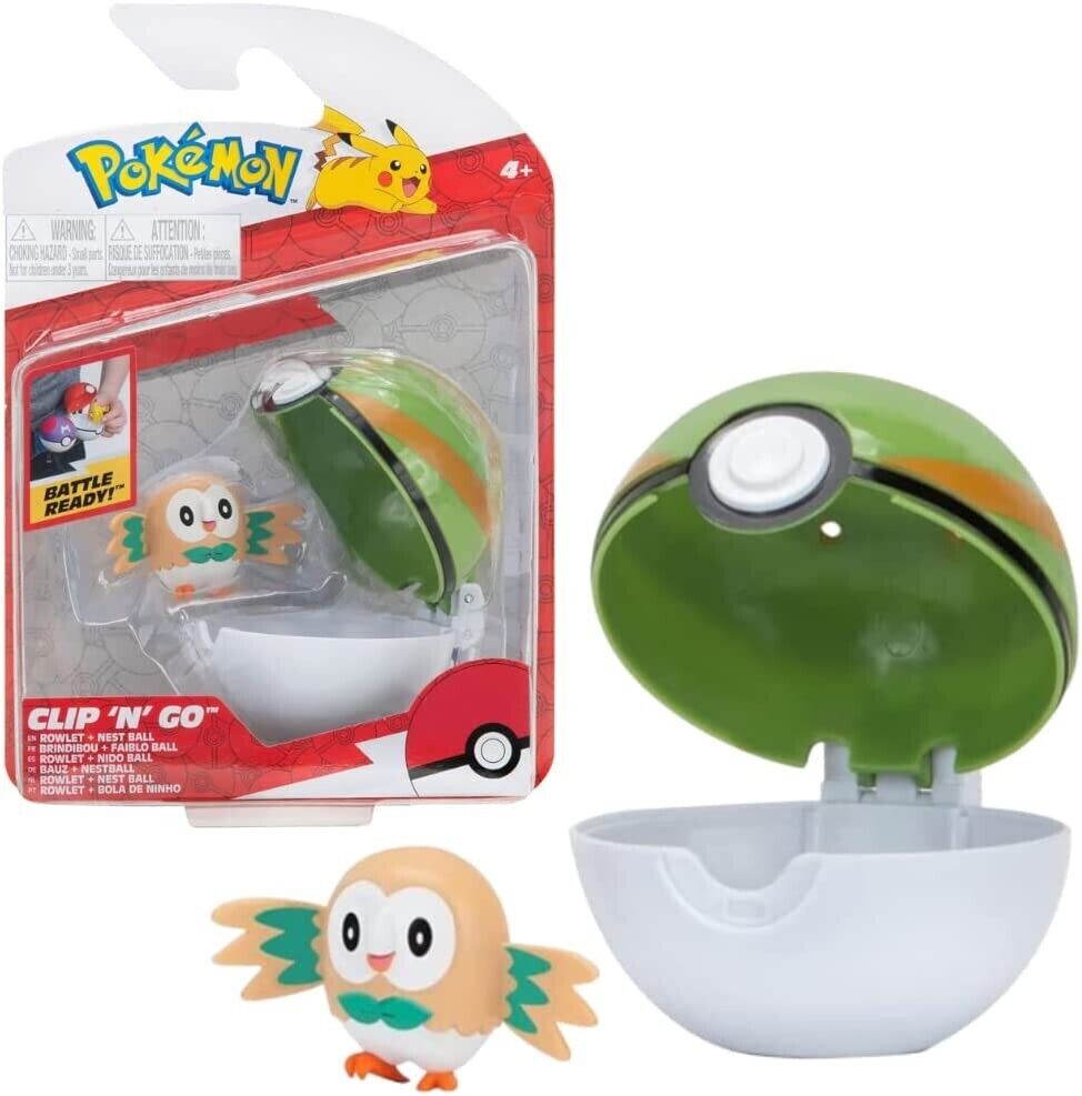 Now you can bring Pokémon battle play to life anywhere you go! Clip 'N' Go Pokemon Balls allow you to carry and hold your Pokémon like a real Pokémon trainer! Each set includes one Poké Ball and one Rowlet figure. Simply open the latch to reveal the figure inside. Add them all to your Pokémon team!