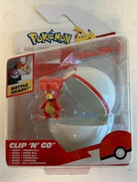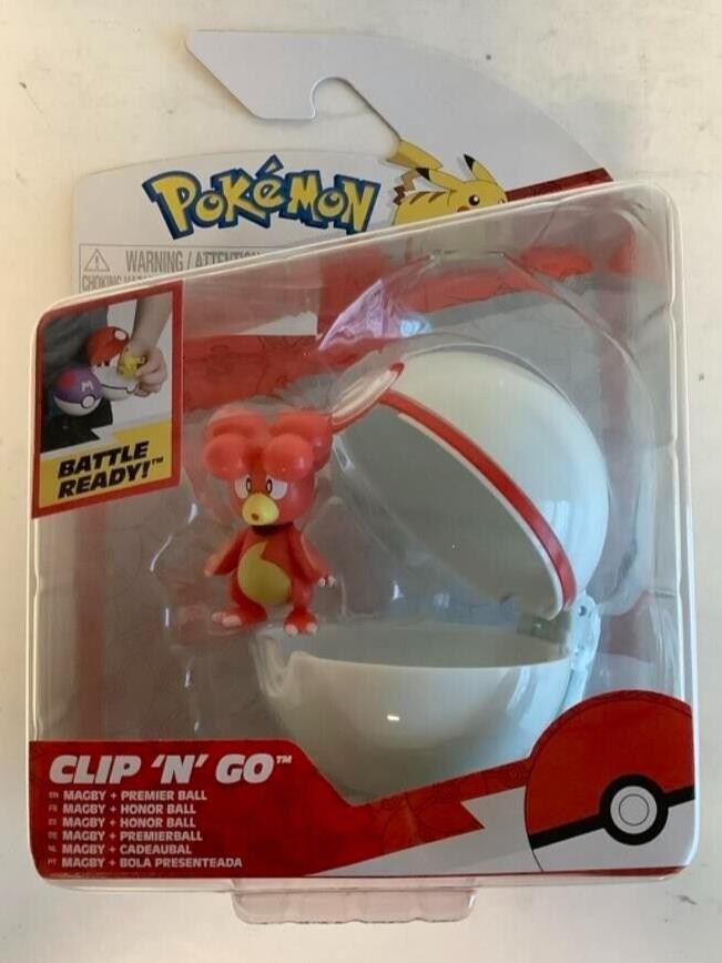 Now you can bring Pokémon battle play to life anywhere you go! Clip 'N' Go Pokemon Balls allow you to carry and hold your Pokémon like a real Pokémon trainer! Each set includes one Poké Ball and one 5cm Magby figure. Simply open the latch to reveal the figure inside. Add them all to your Pokémon team!
