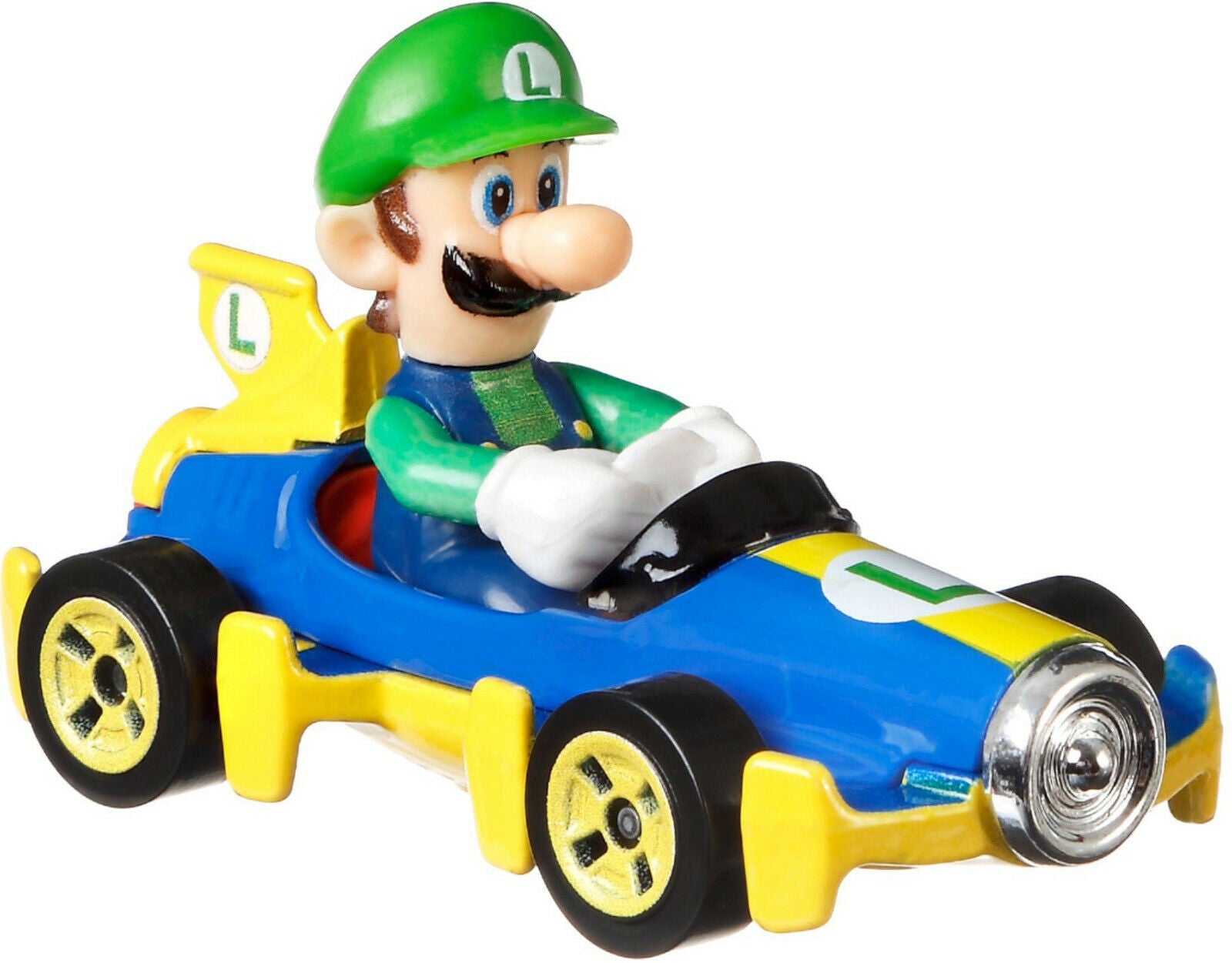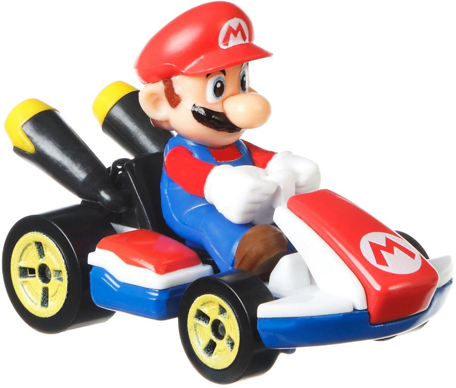 This 4-Pack of Mario Kart replica 1:64 die-cast karts will delight Mario Kart and Hot Wheels fans of all ages! The 4-Pack includes top favorite iconic Mario Kart characters and one exclusive Black Yoshi! Kids can power-up their imagination by combining the thrill of Hot Wheels performance with the action and racing of Mario Kart. Speed off and perform crazy stunts with Mario, Luigi, Bowser, and the exclusive Black Yoshi! All Mario Kart die-cast vehicles are compatible with existing Hot Wheels track sets.