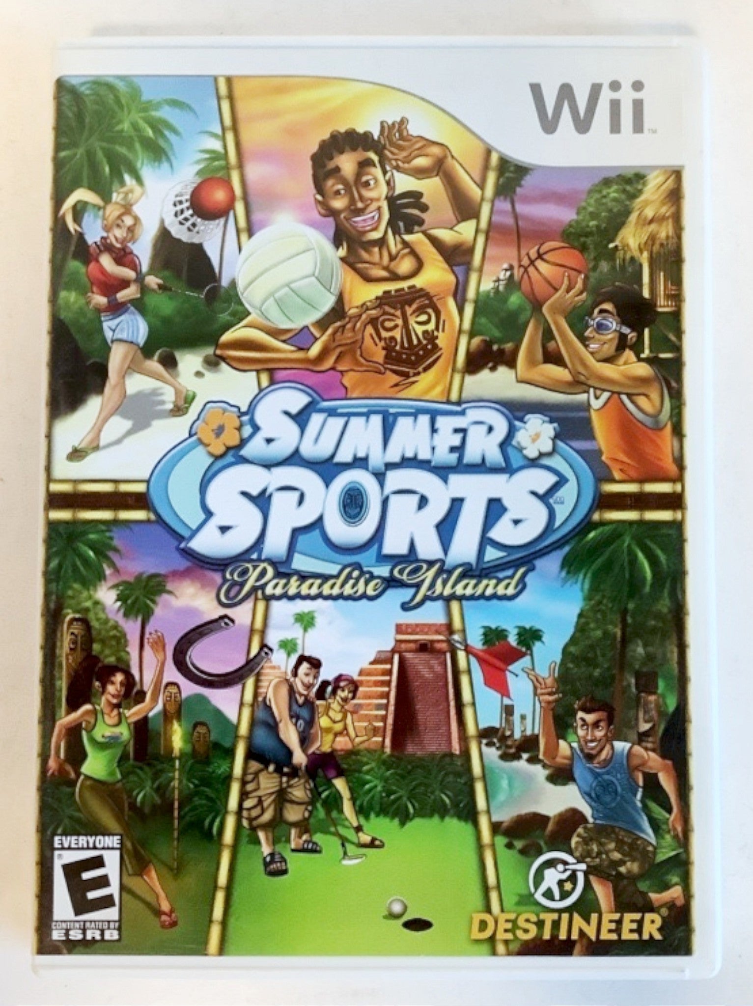 Check into the Paradise Island Resort and explore the vast array of recreational activities in a lush tropical environment. Compete against friends in a collection of summer-themed games including Basketball, Croquet, Lawn Darts, Badminton, Volleyball, Horse Shoes, and Mini-Golf. Bump, set, spike, throw, putt, shoot, swing, and more - all with intuitive Wii Remote gestures!