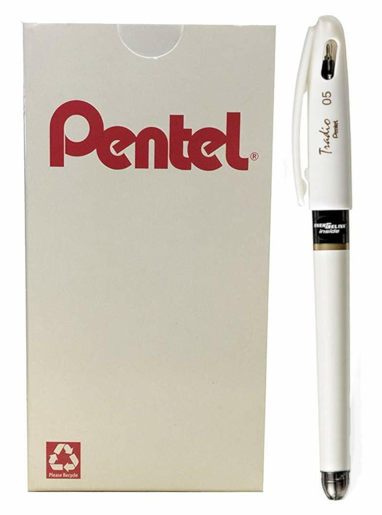 NEW Pentel EnerGel Tradio Pearl BLACK .5mm Needle Tip Gel Pen 12-PK Fine BLN115